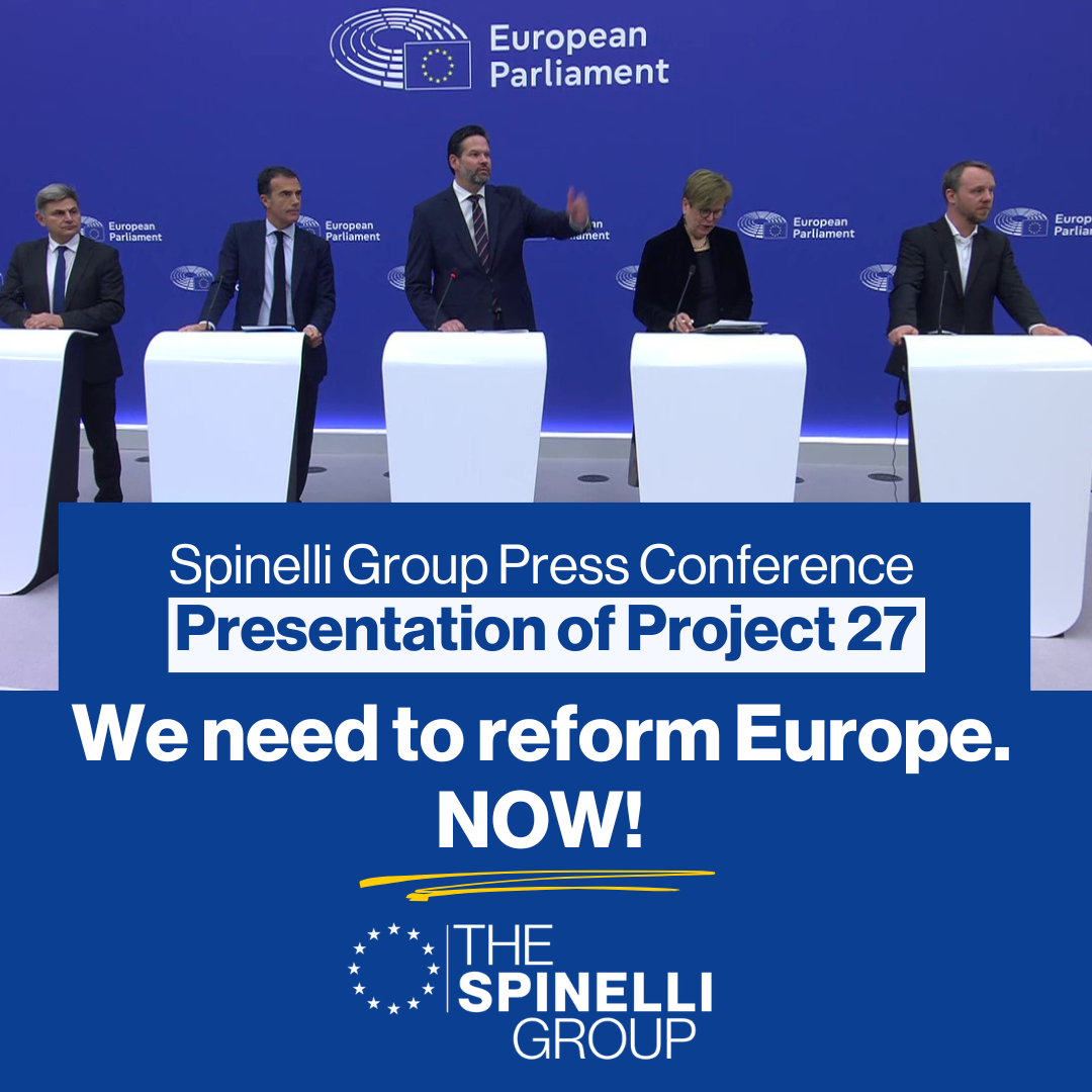 On Tuesday, January 21, 2025, the Spinelli Group, represented by its President Lukas Mandl (EPP) and board members Gabriele Bischoff (S&D), Daniel Freund (Greens/EFA), Nikolaos Farantouris (Left), and Sandro Gozi (Renew Europe), held a press conference to present their ambitious initiative, Project 27.